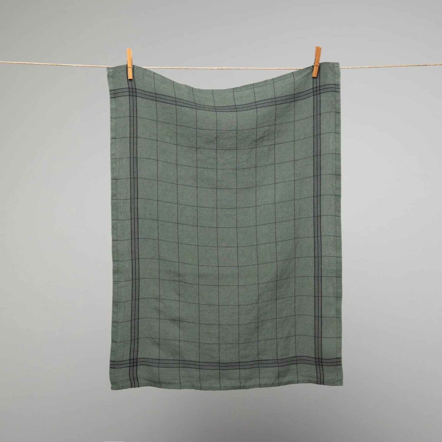 Beautiful French tea towels inĀ a washedĀ green Rosemary colourway featuring black graph check.