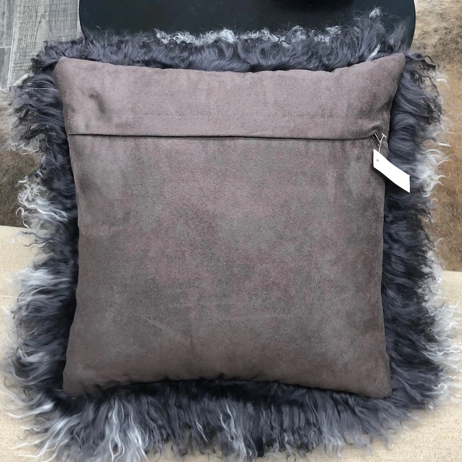 The Mongolian hair is on one side only of the cushion. Reverse side a matching tone faux suede.