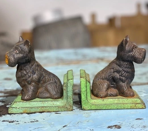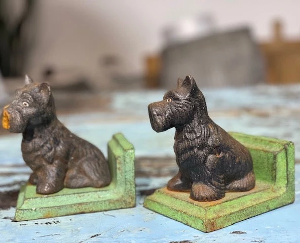 Hand Painted Cast Iron Scotty Bookends.Â