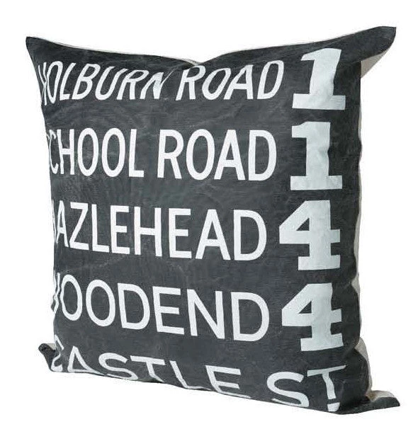 A wonderful statement cushion featuring printed a print based on a vintage subway sign.