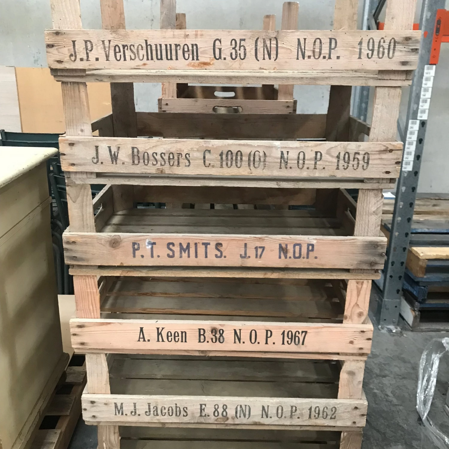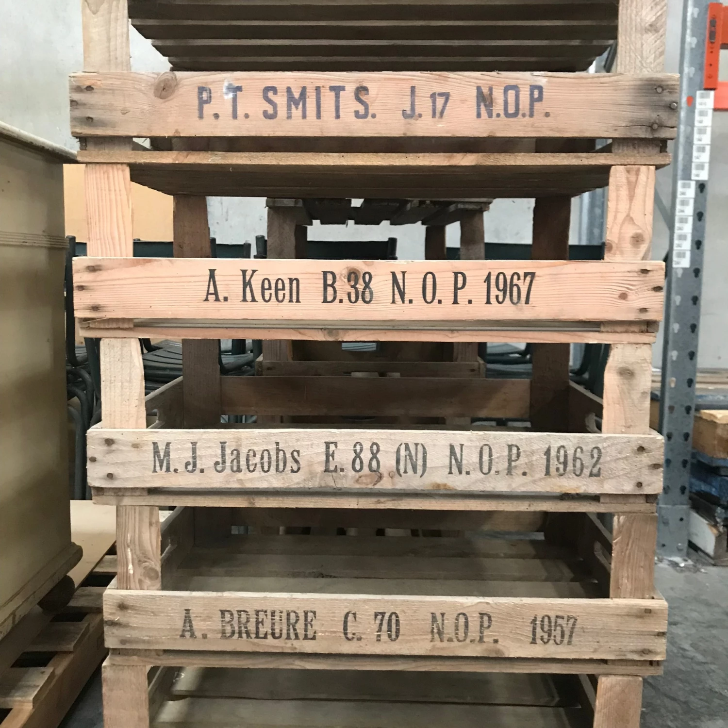 Wonderful handcrafted old timber market garden produce trays from France, Belgium and Holland.